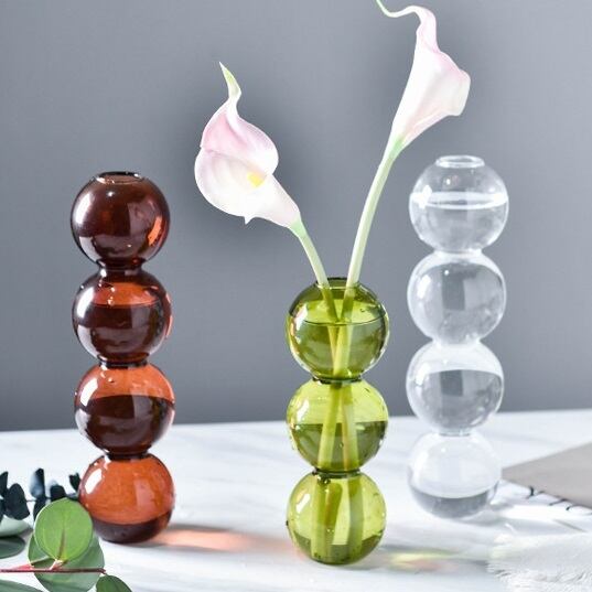 3段バブルデザイン フラワーベース かわいい花瓶 グリーン クリア 透明 3連
